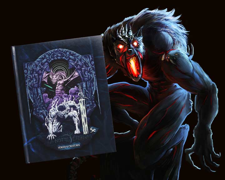 La Notte Eterna is a post-apocalyptic dark fantasy setting for 5e—where divine war shattered the skies, the sun god is dead, and the world of Neir survives in eternal night.